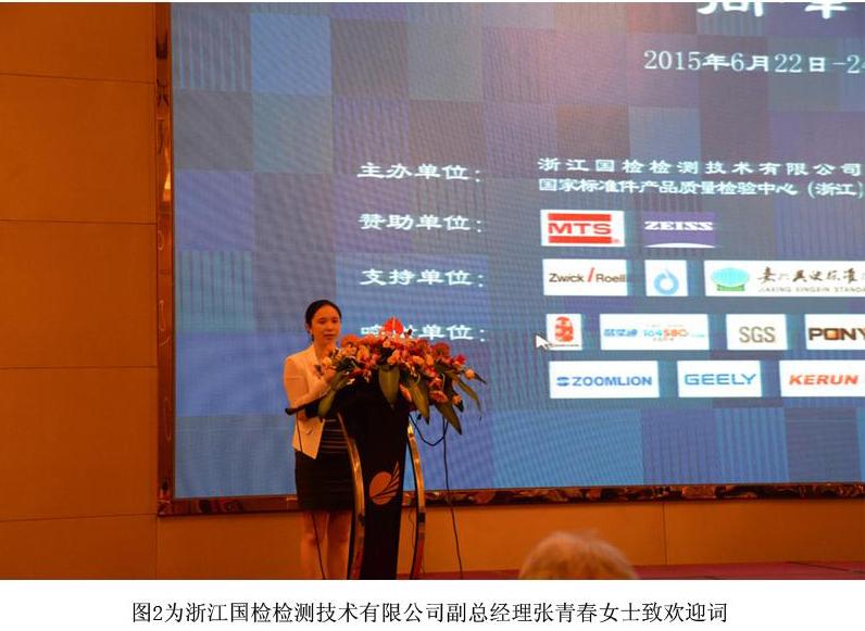 2015 年6月23日上午,由浙江國檢檢驗(yàn)技術(shù)有限公司(國家標(biāo)準(zhǔn)件產(chǎn)品質(zhì)量檢驗(yàn)中心(浙江))與中國機(jī)械通用零部件協(xié)會(huì)緊固件分會(huì)聯(lián)合主辦的“第二屆緊固件應(yīng)用 與質(zhì)量控制高峰論壇”在海鹽正式啟幕。論壇吸引了國內(nèi)六十余家緊固件生產(chǎn)企業(yè)和汽車、風(fēng)電、鐵路整機(jī)廠商近百人參加。浙江國檢副總經(jīng)理張青春女士代表主辦 方致歡迎詞。