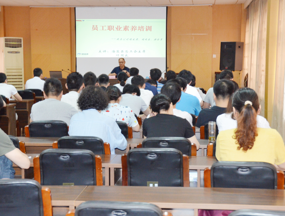 圖為海鹽縣總工會主席葉國良給國檢員工進行職業(yè)道德培訓(xùn)