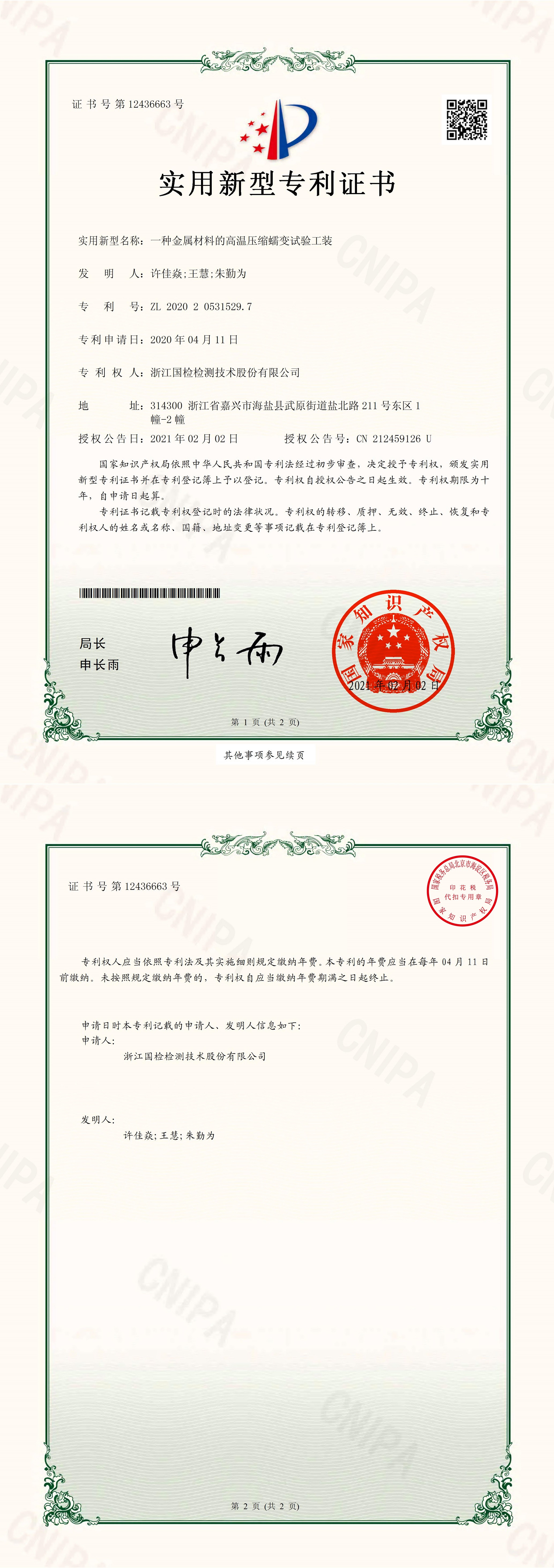 發(fā)明專利:一種金屬材料的高溫壓縮蠕變試驗工裝