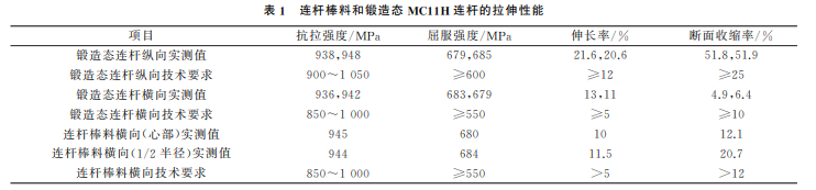1 鍛造態(tài)連桿的拉伸性能