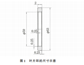 某公司生產(chǎn)的 GCr15軸承鋼葉片環(huán)屬于承受 負荷較大的小截面零件,其尺寸見圖1。該零件為 環(huán)形,在熱處理過程中極易變形,采用夾具緊固、鹽 浴淬火的方式進行淬火處理后,平面度由50μm 降 到10μm 以下,圓度由40μm 降到20μm 以下。但 是,在后續(xù)磁粉探傷過程中,該葉片環(huán)外表面沿軸向 發(fā)生磁粉聚集現(xiàn)象。筆者通過化學成分分析、宏觀 觀察、顯微組織觀察和能譜分析等方法,分析了該葉片環(huán)外表面發(fā)生磁粉聚集的原因。