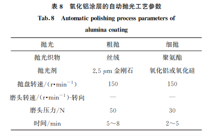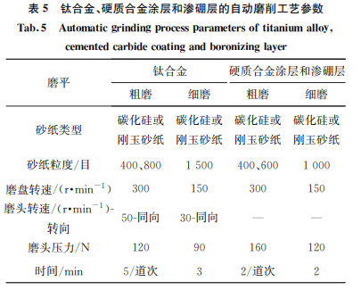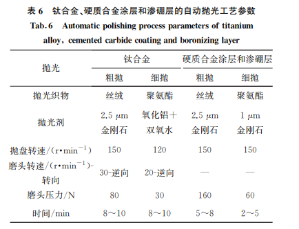 硬質(zhì)合金涂層和滲硼層自動(dòng)磨拋工藝參數(shù)見表5~