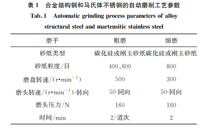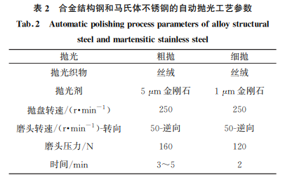2.1 合金結(jié)構(gòu)鋼和馬氏體不銹鋼的自動(dòng)磨拋參數(shù) 和效果
