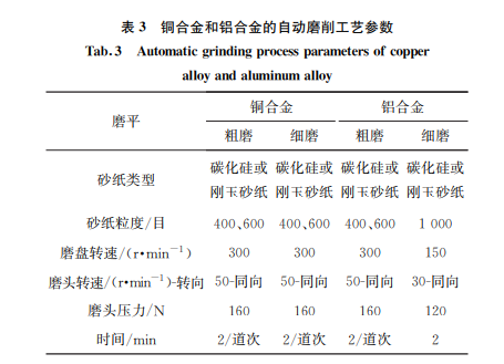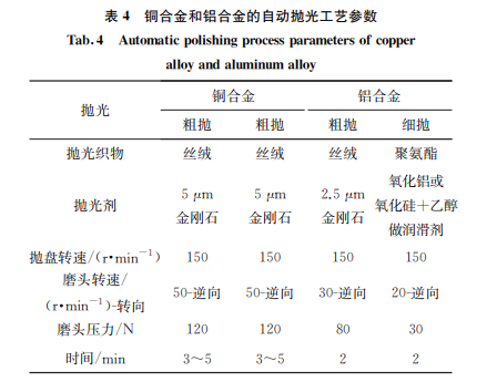 2.2 銅合金與鋁合金的自動(dòng)磨拋參數(shù)和效果