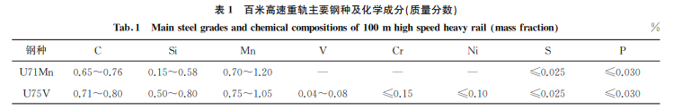 百米高速重軌主要鋼種及化學(xué)成分見表1。