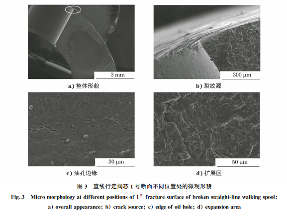(2)造成直線行走閥芯發(fā)生早期斷裂的主要因 素包括邊緣棱角效應、表面打磨損傷和滲碳不良。