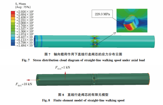 (1)失效直線行走閥芯的斷裂形式為拉-壓載
