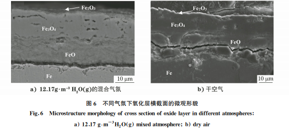 綜合試驗(yàn)現(xiàn)象,可以認(rèn)為在該試驗(yàn)中 H2O(g) 影響氧化層結(jié)構(gòu)是其影響金屬表面脫碳的主要途 徑。在實(shí)際生產(chǎn)中,降低爐氣中 H2O(g)含量可以 很好地減輕表面脫碳,也能減少氧化燒損。