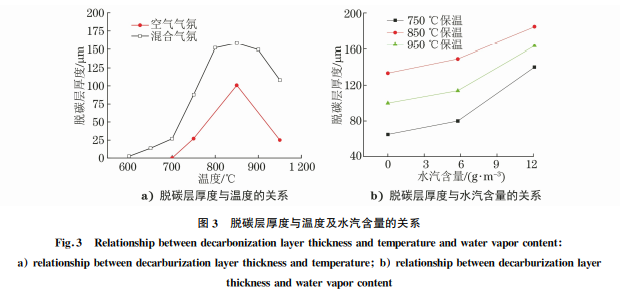 2.2 氣氛成分對(duì)脫碳層厚度的影響