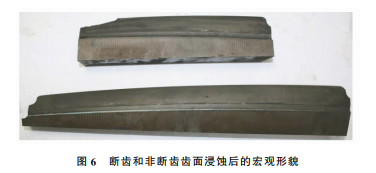 斷齒和非斷齒齒面浸蝕后的宏觀形貌如圖6所示。