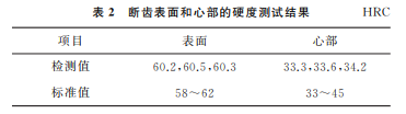 在斷 齒 的 表 面 和 心 部 取 樣,按 標 準 GB/T
