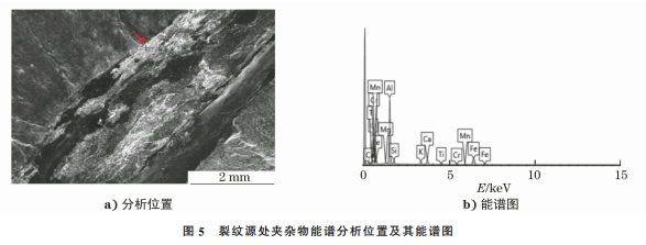 采用能譜分析儀對裂紋源處的疑似夾雜物進行