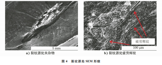 采用SEM 對裂紋源進行觀察,結(jié)果如圖4所