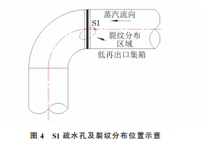 (1)疏水管及疏水方式設(shè)置不合理,管內(nèi)蓄積 大量冷凝水,加上機(jī)組啟停、負(fù)荷波動(dòng)導(dǎo)致疏水管內(nèi) 冷凝水回流。再熱器集箱疏水孔及內(nèi)壁被強(qiáng)制冷 卻,承受了較大的交變應(yīng)力。