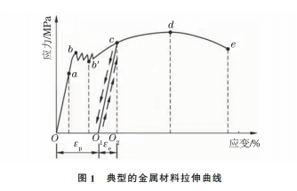 材料在外力的作用下會(huì)產(chǎn)生變形,且隨著外力 的增加,材料的變形增加,直至斷裂。典型的金屬材 料拉伸曲線如圖1所示。