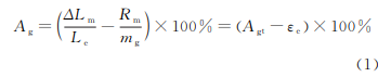 式中:ΔLm 為最大力時(shí)的總延伸長(zhǎng)度;Le 為引伸計(jì) 標(biāo)距;Rm 為抗拉強(qiáng)度;mg 為應(yīng)力-延伸率曲線彈性 部分的斜率;Agt 為最大力總延伸率;εe 為力-延伸 曲線上彈性部分的應(yīng)變。
