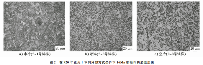 2.2 不同熱處理工藝下16Mn鋼鍛件的顯微組織