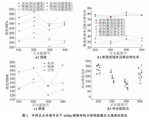 2.1 不同熱處理工藝下16Mn鋼鍛件的力學(xué)性能