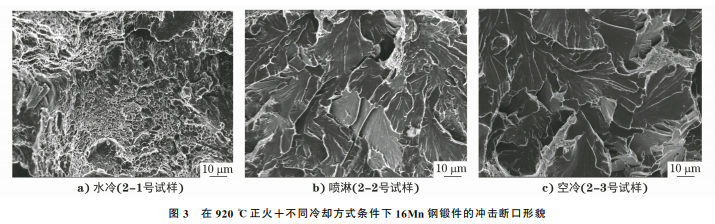 2.3 不同熱處理工藝下16Mn鋼鍛件的沖擊斷口 形貌
