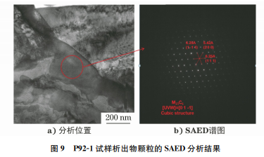 P91鋼和P92鋼焊縫組織為不同位向的馬氏體 板條束和馬氏體板條。晶界上主要由塊狀、條狀和 小的顆粒狀析出相組成,而馬氏體板條界上主要為 細小條狀(或棒狀)和粒狀析出相,板條內(nèi)有許多細 小的析出相,呈一定位向排列。P91鋼和P92鋼的 析出相主要是 M23C6,M7C3,M6C和 MX 等,其中 M23C6 為主要的析出物,M23C6 具有復(fù)雜的面心立 方結(jié)構(gòu),金屬原子團 M 主要是 Cr原子團,可溶解 Fe、Co、Ni、W、Mo等元素[6]。