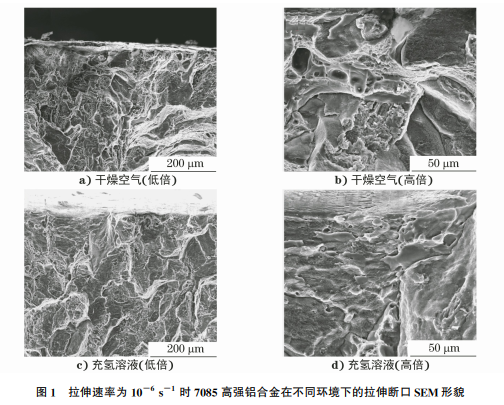 筆者以7085高強(qiáng)鋁合金材料為研究對象,通過 設(shè)定不同的慢拉伸應(yīng)變速率來研究氫致應(yīng)力腐蝕敏 感性的問題,同時對試樣斷口進(jìn)行掃描電子顯微鏡 (SEM)分析,初步探討了慢拉伸應(yīng)變速率與氫脆敏 感性之間的關(guān)系,為高強(qiáng)鋁合金材料氫脆敏感性評 價體系的建立提供借鑒。