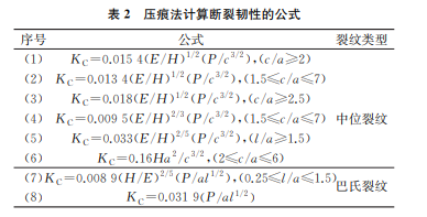 在斷裂韌性評(píng)級(jí)的精度和適應(yīng)范圍方面,傳統(tǒng)壓 痕法具有一定的局限性。對(duì)于薄膜類(lèi)、涂層類(lèi)以及表 面類(lèi)材料,特別是高脆、硬性表面強(qiáng)化層,由于材料本 身尺寸的限制,壓痕法測(cè)量表面類(lèi)或薄膜類(lèi)材料的斷 裂韌性具有方便、簡(jiǎn)單等優(yōu)勢(shì),同時(shí)具有較高的精度。有關(guān)壓痕法計(jì)算斷裂韌性的經(jīng)驗(yàn)公式較多,且具有不 同的應(yīng)用范圍。同時(shí),根據(jù)裂紋類(lèi)型的不同,公式的選 用也不同。大致可以分為中位裂紋和徑向裂紋[14]。