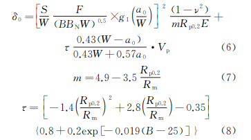 其中ASTME1820—2020b標(biāo)準(zhǔn)對應(yīng)的CTOD 特征值的計(jì)算公式為