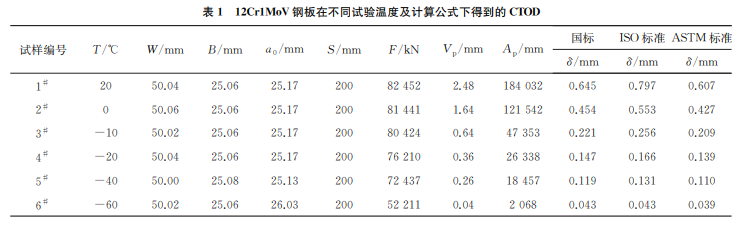 筆者制備了同時(shí)滿足以上3個(gè)標(biāo)準(zhǔn)要求的測試 試樣,按照以上3種標(biāo)準(zhǔn)規(guī)定的測試方法對同種材 料在不同溫度下進(jìn)行斷裂韌性測試,再根據(jù)以上3 個(gè)標(biāo)準(zhǔn)規(guī)定的計(jì)算公式進(jìn)行CTOD計(jì)算,并對測試 結(jié)果進(jìn)行比較分析,判斷其中的差異,為工程實(shí)際應(yīng) 用提供依據(jù)。