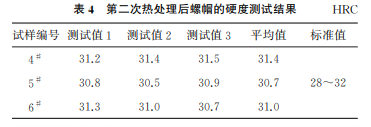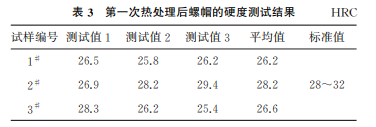 通過查找加工記錄發(fā)現(xiàn),該批螺帽進行了兩次熱處理,第一次為淬火油冷+回火處理,第二次為淬 火水冷+回火處理。第一次熱處理后螺帽的硬度測 試結(jié)果如表3所示,可見螺帽的硬度不均勻,且有2 個試樣的硬度低于GB/T1172—1999的要求。