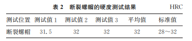 將腐蝕后的金相試樣重新磨制、拋光后,進行硬 度測試,并依據(jù) GB/T1172—1999《黑色金屬硬度 及強度換算值》進行換算,結(jié)果如表2所示,可見斷 裂螺帽的硬度較為均勻,未見明顯差別,滿足 GB/T 1172—1999的要求。