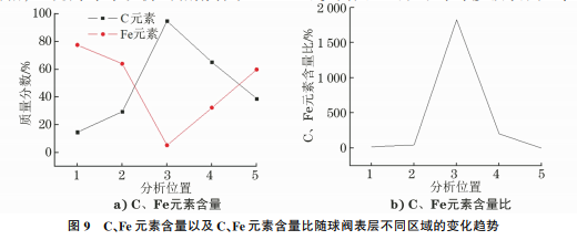 元素含量比隨球閥表層不同區(qū)域的變化趨勢(見圖