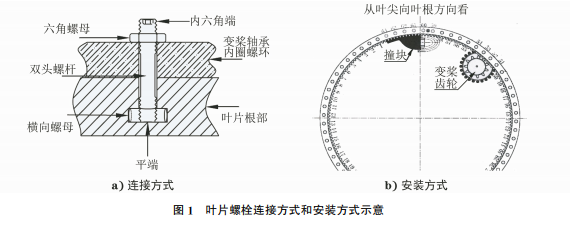 (1)對葉片的運行載荷、設(shè)計載荷進行優(yōu)化,對 葉根連接系統(tǒng)進行重新設(shè)計,并對螺栓連接強度進 行計算校核。